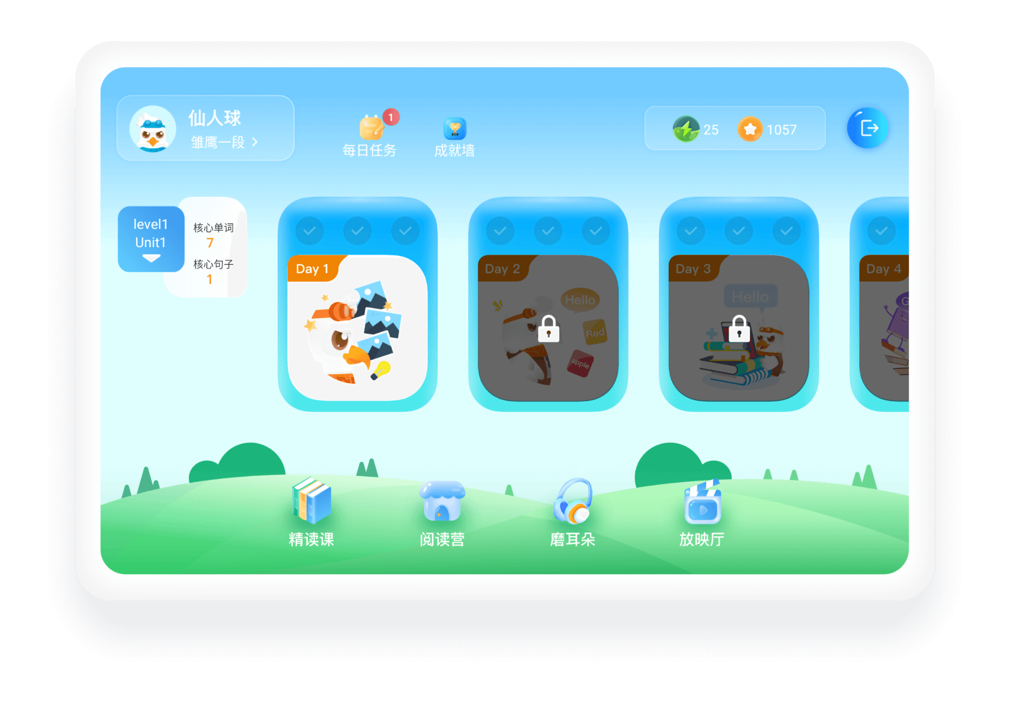 - 专业测评:英语根据剑桥英语通用5级考试体系,精准测出语言水平,量身定制学习内容,让各阶段孩子轻松起步。
