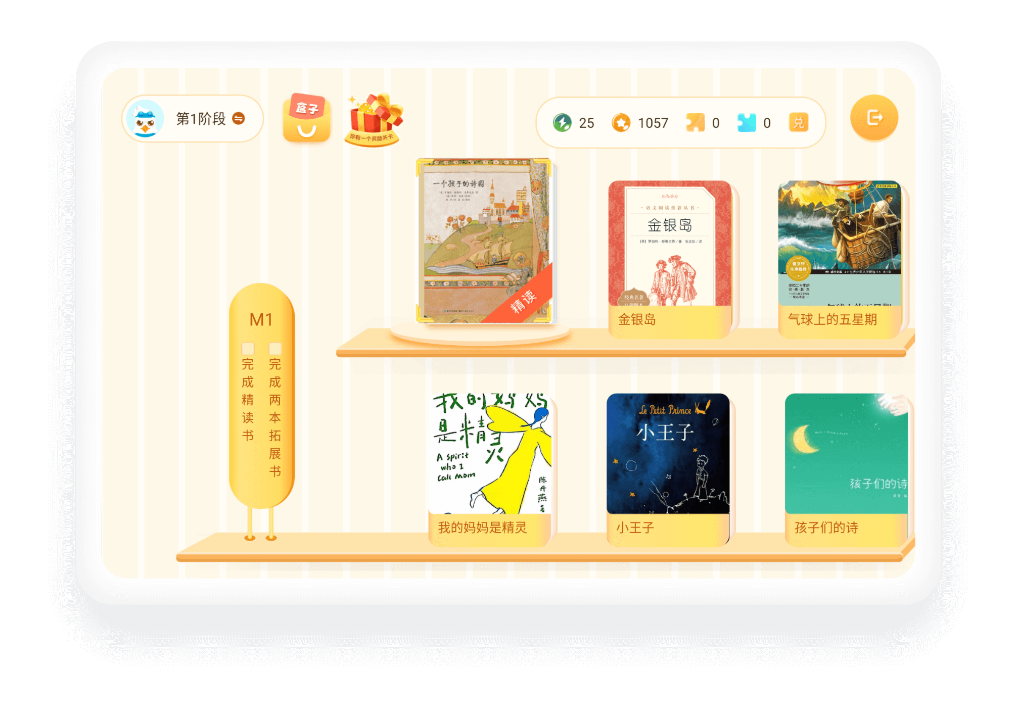 - 高阶:精选新课标指定书目,内容囊括文学、哲学、科普、人文等,涵盖5-9年级必读书单。游戏闯关引导孩子边复习边记忆,充分享受阅读的乐趣。